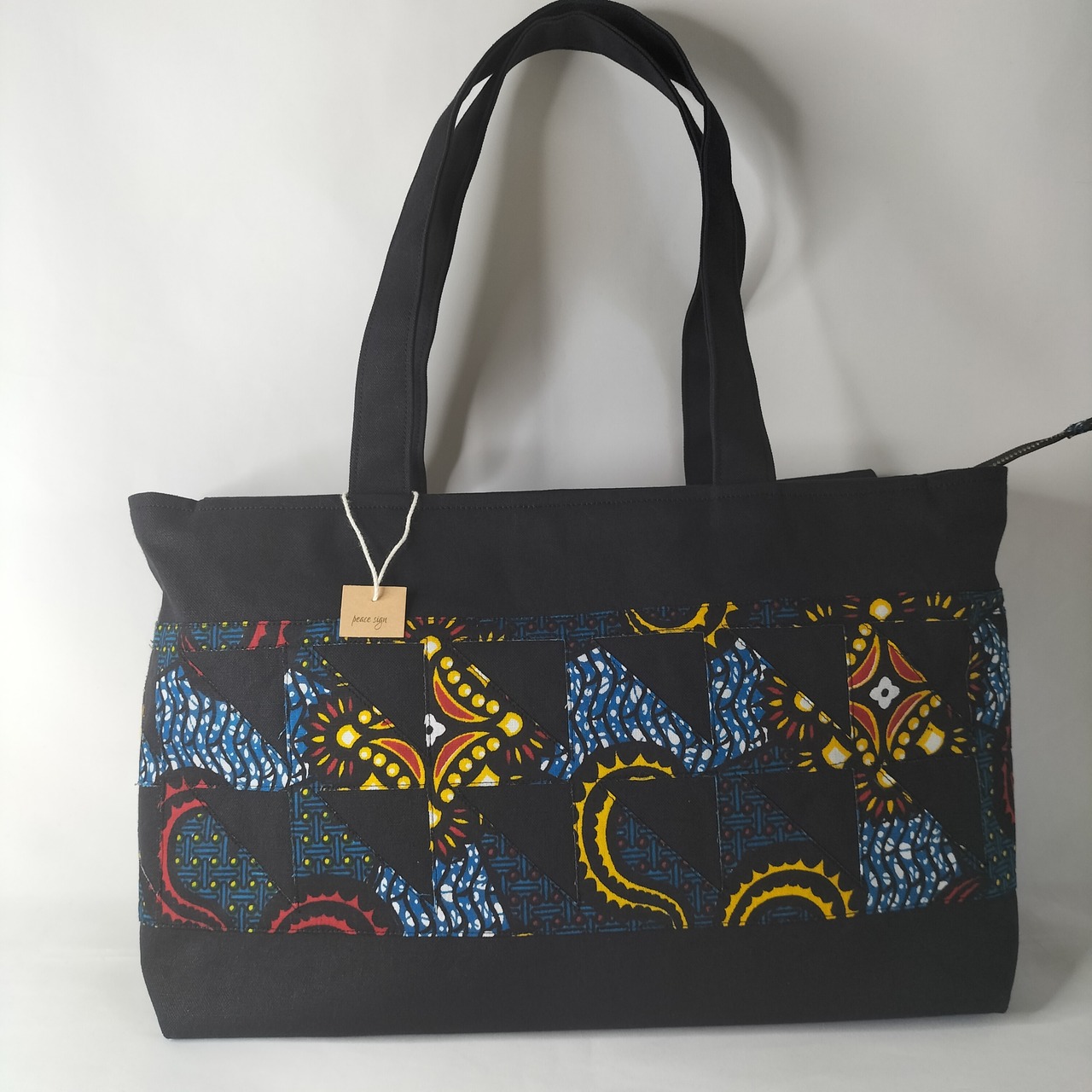 黒の帆布にアフリカ布が映えるのでとてもお洒落です。